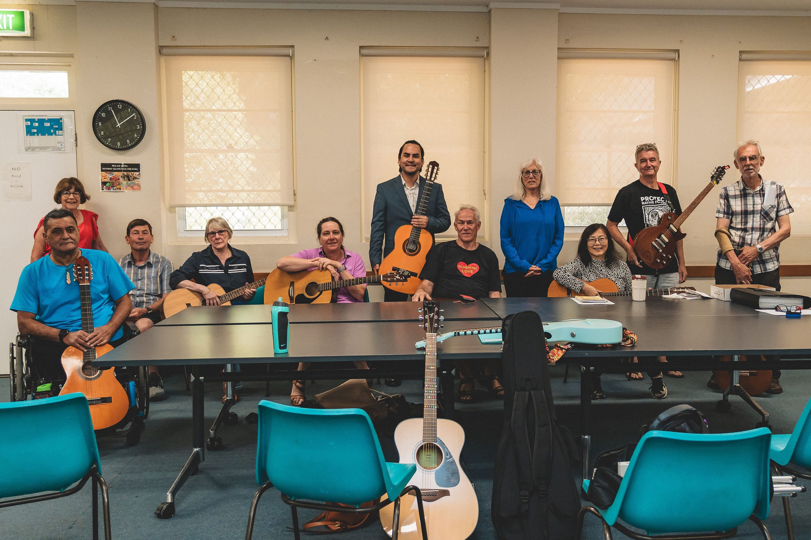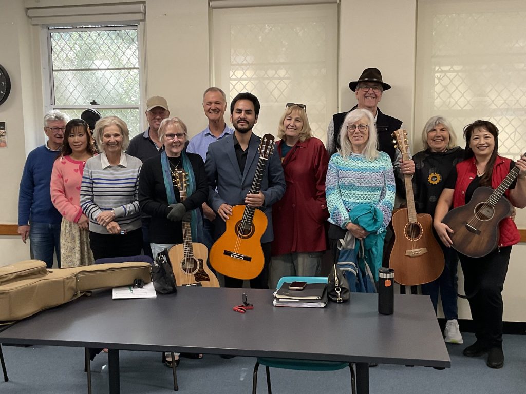 Our weekly 60-minute guitar classes are held in community spaces around Canberra. Each class is tailored and focused on what the group would like to achieve, such as the songs people want to learn, special themed workshops, community music activities, and even performance opportunities!